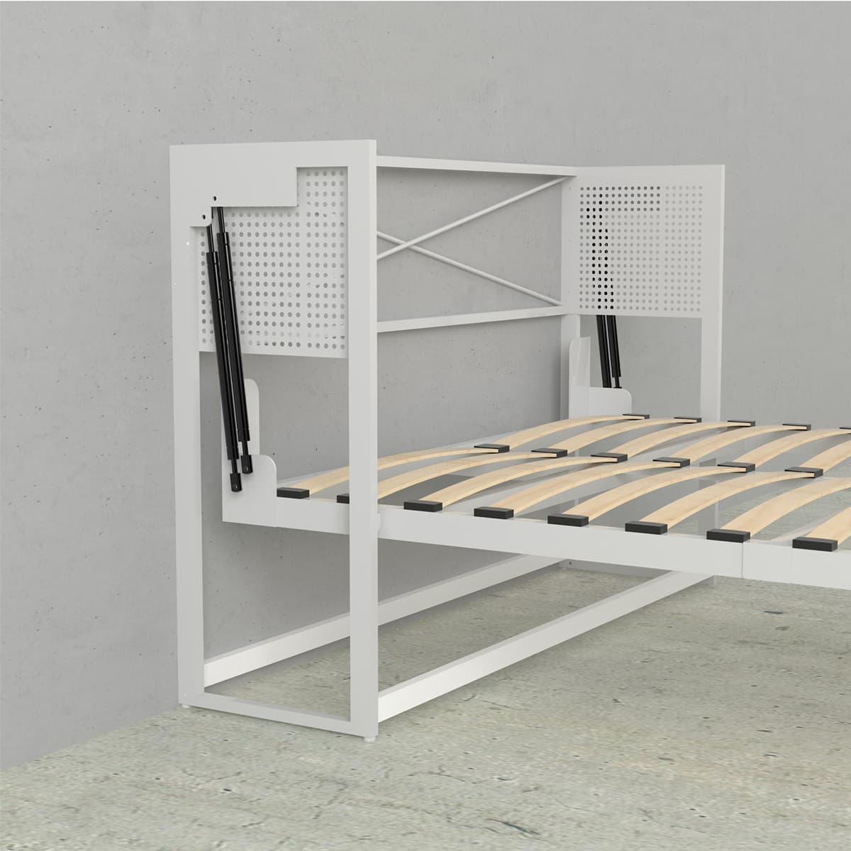 The cabinet of our beds is designed to accommodate most mattresses up to 12 inches thick, so you can personalize the feel for maximum comfort. You are able to purchase whatever mattress meets your needs in style and budget. Please note, we do not recommend the use of pillow-top mattresses with Murphy beds. Xtraroom’s Murphy bed mattress support uses a euro slat design with curved wood slats that provide support where you need it and eliminates the need for a box spring.