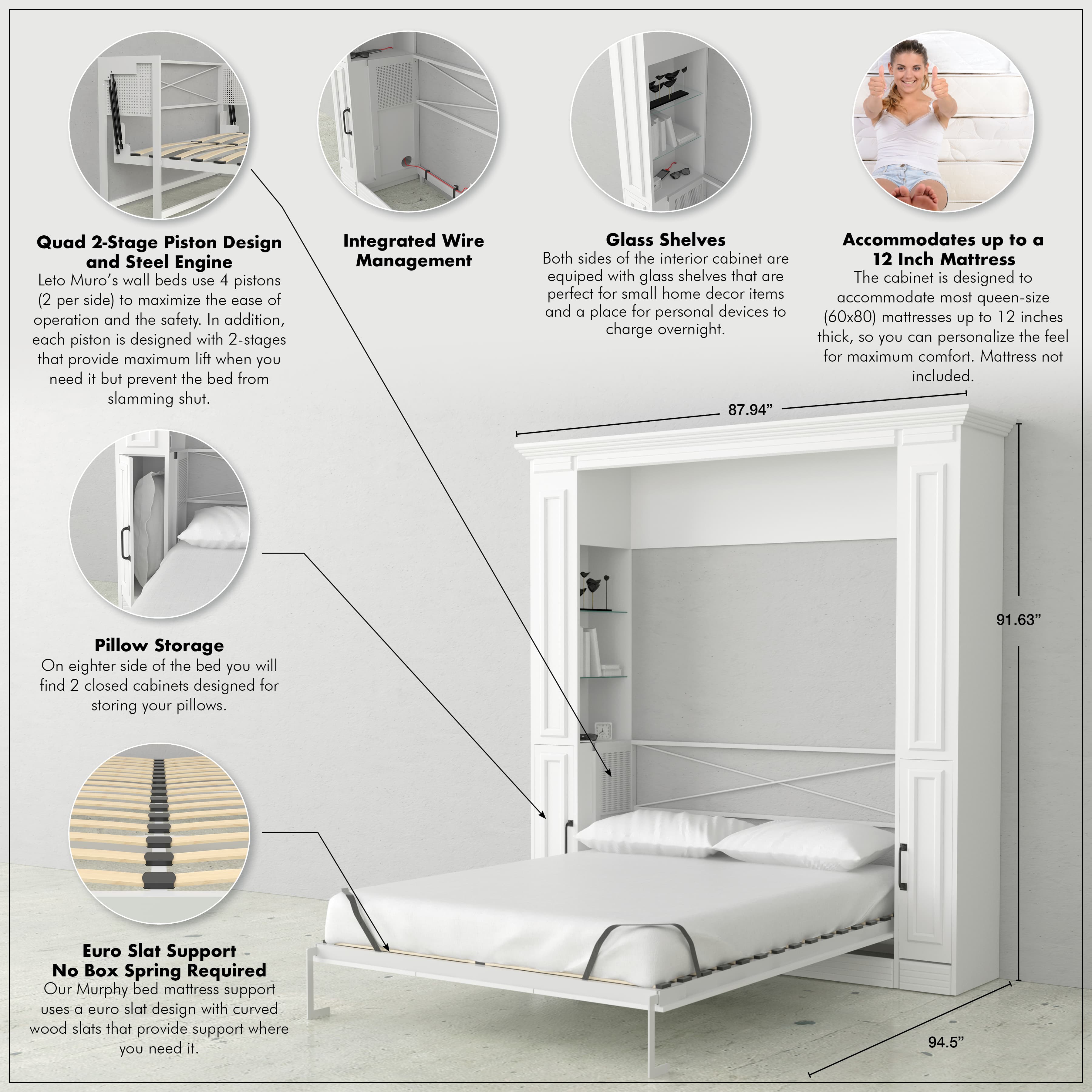 Convient à la plupart des matelas standard jusqu'à 12" d'épaisseur (literie retirée avant de fermer l'armoire)