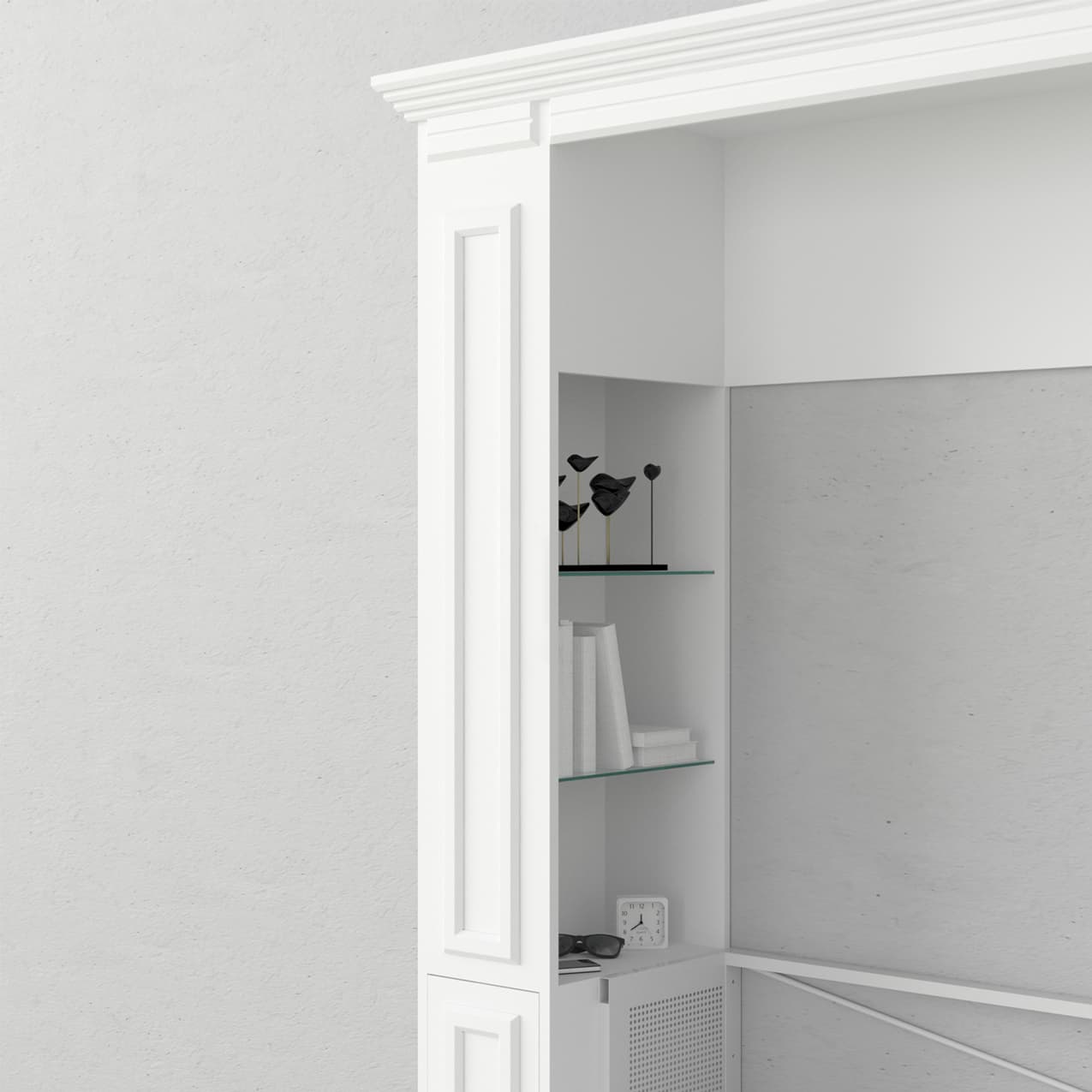 Xtraroom also offers Murphy beds featuring 2 integrated towers, this style of wall bed has closed cabinets on the lower portions perfectly sized to store pillows when not in use and glass shelves in the upper sections for small decor items and a place to store your devices overnight. The units also feature integrated wire management so you can set up your phone charge or alarm clock.