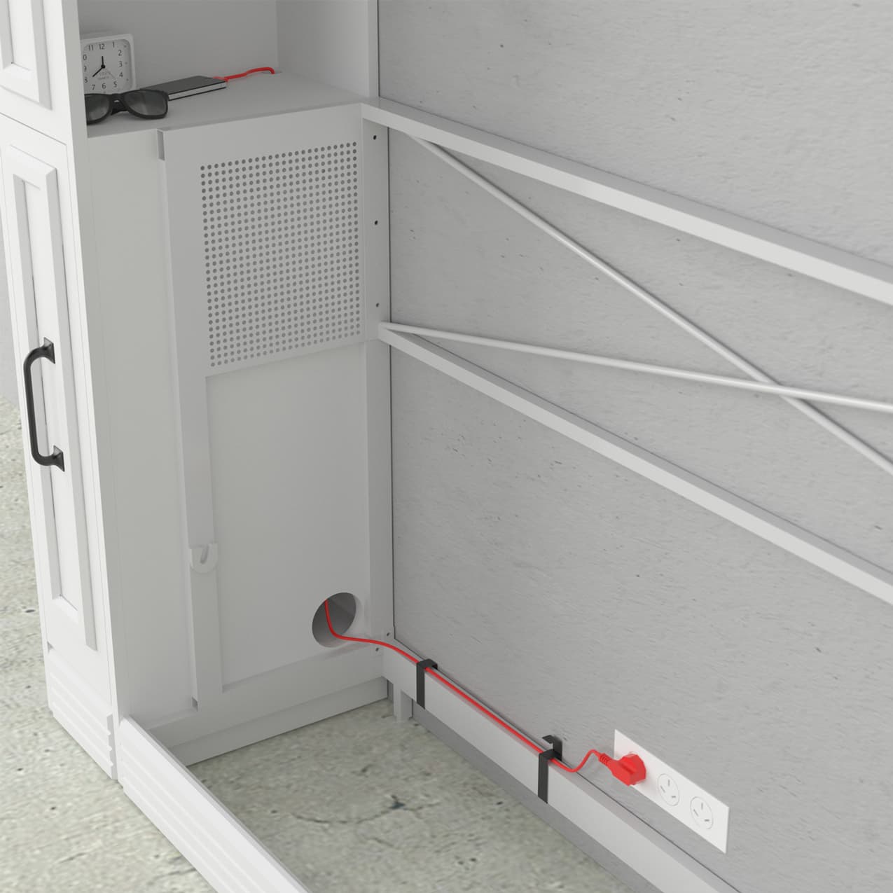 - The locking mechanism on all of our beds is located on the top right-hand side of the cabinet. The bed should NOT be put into a corner effectively blocking the ability to lock/unlock the cabinet. You should also avoid blocking any HVAC vents or electrical outlets.