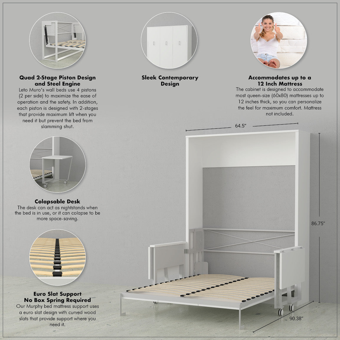 Are you ready for a space transformation? Check out the Alexa Queen Murphy Bed with Desk! It's a decor chameleon, ready to work in any space. Matte white finish, easy assembly, and no need for a box spring— the comfy euro slats got you covered! Foldable desk panels that can transition to nightstands when using the bed? Genius!