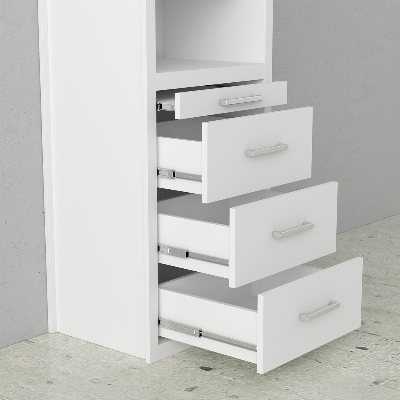 The bottom of each storage cabinet contains three drawers, so there is plenty of space to put away your items.