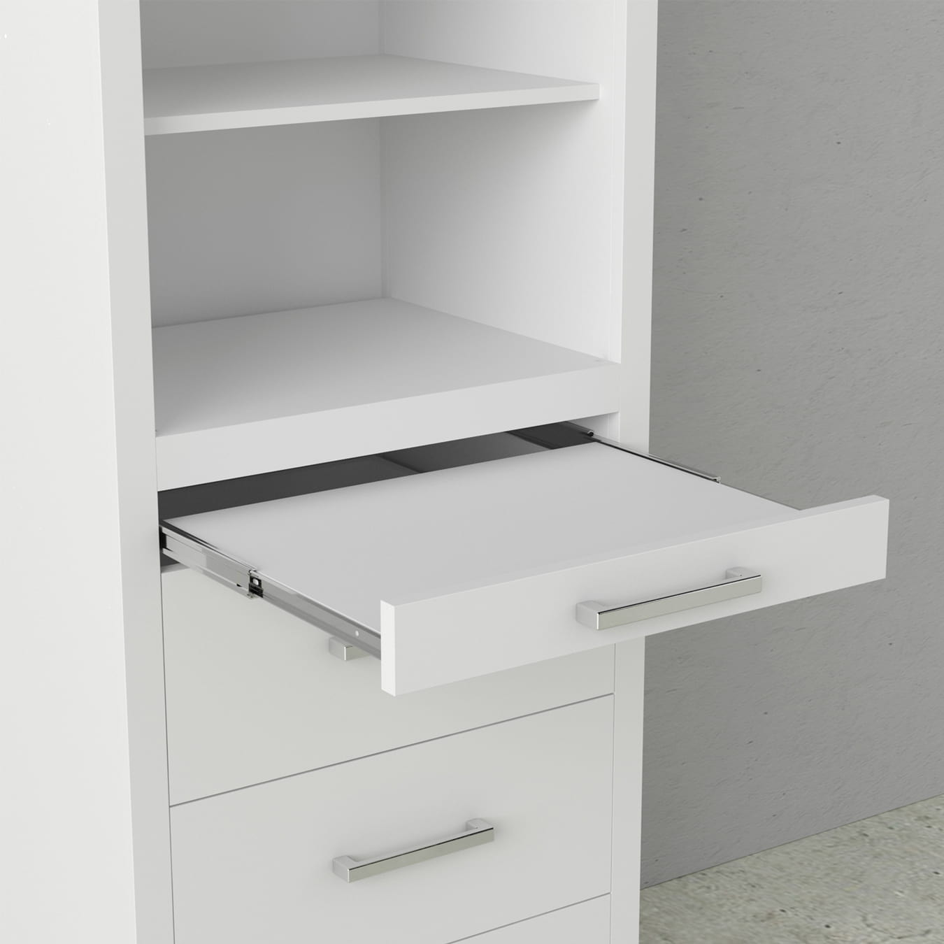Our storage towers come with an array of customizable options. Whether you need all three shelves or just one, the top section of the cabinet can be set up with adjustable shelves.